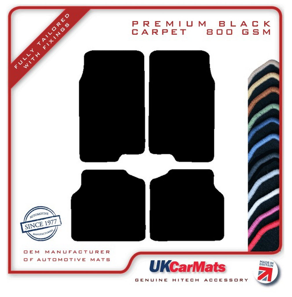 Previous NextHITECH’S NEWLY ADDED PREMIUM CARPET RANGE: A LUXURIOUS VERY HARD WEARING 800 gsm POLYAMIDE CARPET Please check if these are the correct mats for your car when your cars model year falls on the start or the end of the specified year range. If you are unsure please contact us before placing your order. Full set, front and rear mats. A set of fully tailored, premium tufted carpet mats for the above vehicle, manufactured to fit the shape of your car exactly, as per picture shown. The mats are manufactured from a high quality automotive tufted velour carpet, which has an 800 gsm pile weight and a total weight of 2400gsm. These mats have a cut-pile, are finished with an overlocked edge (also known as serging or whipped edging), and have an anti-slip, crumb tec backing. The mats will either be supplied with the original fixing system where applicable if the listing picture shows location holes or otherwise with an industry standard fixing kit for the driver mat. The fixing image, see third picture, confirms which fixing type will be supplied, if you are unsure these are correct for your car please ask! Please note: for OE style only the fixing rings will be supplied in the mats not the securing points as these should already be in the car. The black tufted carpet is available with a matching black edging or a contrasting coloured edging. There is a choice of 13 different edging colours: Apple Green, Autumn Brown, Black, Charcoal Grey, Hot Pink, Lemon Yellow, Light Grey, Light Steel Blue, Midnight Blue, Mushroom Cream, Polar White, Royal Blue and Racing Red. The carpet is also available in grey and beige and in our standard and luxury range, please check our other listings. Any questions, please let us know.