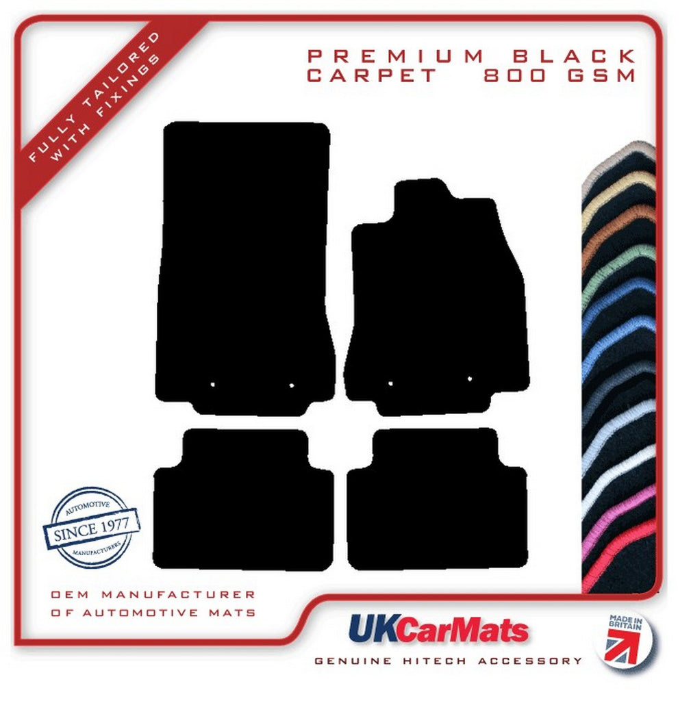 Previous NextHITECH’S NEWLY ADDED PREMIUM CARPET RANGE: A LUXURIOUS VERY HARD WEARING 800 gsm POLYAMIDE CARPET Please check if these are the correct mats for your car when your cars model year falls on the start or the end of the specified year range. If you are unsure please contact us before placing your order. Full set, front and rear mats. A set of fully tailored, premium tufted carpet mats for the above vehicle, manufactured to fit the shape of your car exactly, as per picture shown. The mats are manufactured from a high quality automotive tufted velour carpet, which has an 800 gsm pile weight and a total weight of 2400gsm. These mats have a cut-pile, are finished with an overlocked edge (also known as serging or whipped edging), and have an anti-slip, crumb tec backing. The mats will either be supplied with the original fixing system where applicable if the listing picture shows location holes or otherwise with an industry standard fixing kit for the driver mat. The fixing image, see third picture, confirms which fixing type will be supplied, if you are unsure these are correct for your car please ask! Please note: for OE style only the fixing rings will be supplied in the mats not the securing points as these should already be in the car. The black tufted carpet is available with a matching black edging or a contrasting coloured edging. There is a choice of 13 different edging colours: Apple Green, Autumn Brown, Black, Charcoal Grey, Hot Pink, Lemon Yellow, Light Grey, Light Steel Blue, Midnight Blue, Mushroom Cream, Polar White, Royal Blue and Racing Red. The carpet is also available in grey and beige and in our standard and luxury range, please check our other listings. Any questions, please let us know.