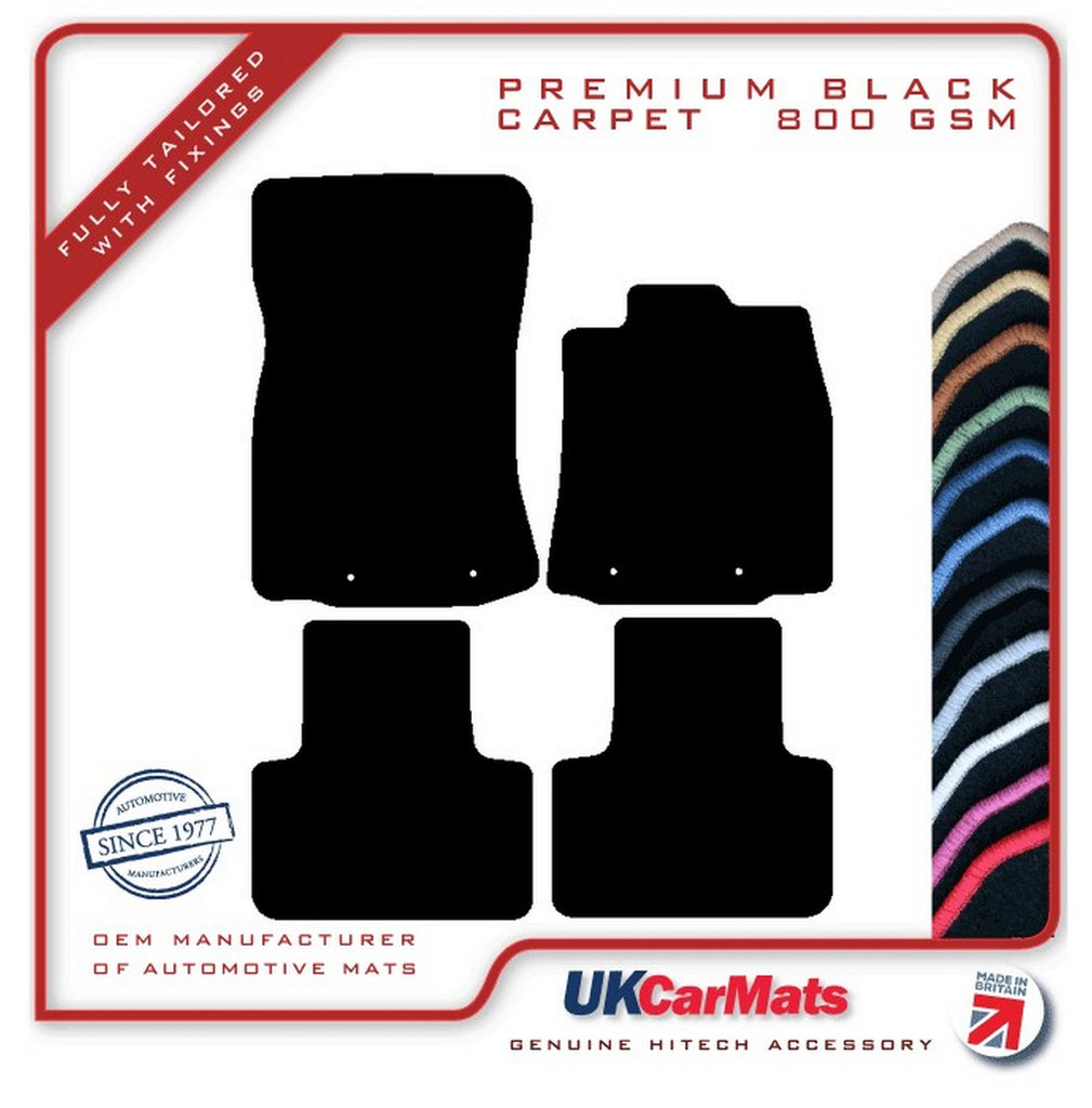 Previous NextHITECH’S NEWLY ADDED PREMIUM CARPET RANGE: A LUXURIOUS VERY HARD WEARING 800 gsm POLYAMIDE CARPET Please check if these are the correct mats for your car when your cars model year falls on the start or the end of the specified year range. If you are unsure please contact us before placing your order. Full set, front and rear mats. A set of fully tailored, premium tufted carpet mats for the above vehicle, manufactured to fit the shape of your car exactly, as per picture shown. The mats are manufactured from a high quality automotive tufted velour carpet, which has an 800 gsm pile weight and a total weight of 2400gsm. These mats have a cut-pile, are finished with an overlocked edge (also known as serging or whipped edging), and have an anti-slip, crumb tec backing. The mats will either be supplied with the original fixing system where applicable if the listing picture shows location holes or otherwise with an industry standard fixing kit for the driver mat. The fixing image, see third picture, confirms which fixing type will be supplied, if you are unsure these are correct for your car please ask! Please note: for OE style only the fixing rings will be supplied in the mats not the securing points as these should already be in the car. The black tufted carpet is available with a matching black edging or a contrasting coloured edging. There is a choice of 13 different edging colours: Apple Green, Autumn Brown, Black, Charcoal Grey, Hot Pink, Lemon Yellow, Light Grey, Light Steel Blue, Midnight Blue, Mushroom Cream, Polar White, Royal Blue and Racing Red. The carpet is also available in grey and beige and in our standard and luxury range, please check our other listings. Any questions, please let us know.