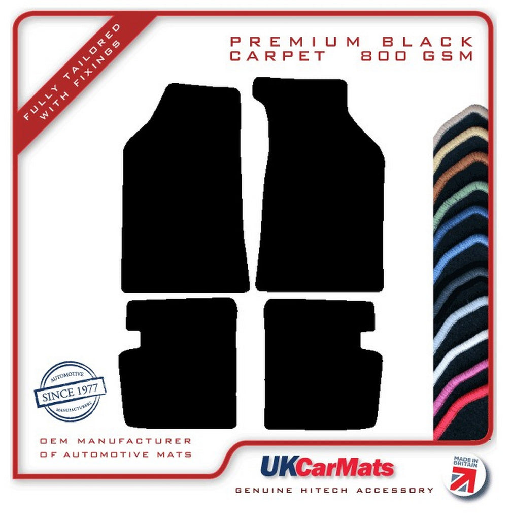 Previous NextHITECH’S NEWLY ADDED PREMIUM CARPET RANGE: A LUXURIOUS VERY HARD WEARING 800 gsm POLYAMIDE CARPET Please check if these are the correct mats for your car when your cars model year falls on the start or the end of the specified year range. If you are unsure please contact us before placing your order. Full set, front and rear mats. A set of fully tailored, premium tufted carpet mats for the above vehicle, manufactured to fit the shape of your car exactly, as per picture shown. The mats are manufactured from a high quality automotive tufted velour carpet, which has an 800 gsm pile weight and a total weight of 2400gsm. These mats have a cut-pile, are finished with an overlocked edge (also known as serging or whipped edging), and have an anti-slip, crumb tec backing. The mats will either be supplied with the original fixing system where applicable if the listing picture shows location holes or otherwise with an industry standard fixing kit for the driver mat. The fixing image, see third picture, confirms which fixing type will be supplied, if you are unsure these are correct for your car please ask! Please note: for OE style only the fixing rings will be supplied in the mats not the securing points as these should already be in the car. The black tufted carpet is available with a matching black edging or a contrasting coloured edging. There is a choice of 13 different edging colours: Apple Green, Autumn Brown, Black, Charcoal Grey, Hot Pink, Lemon Yellow, Light Grey, Light Steel Blue, Midnight Blue, Mushroom Cream, Polar White, Royal Blue and Racing Red. The carpet is also available in grey and beige and in our standard and luxury range, please check our other listings. Any questions, please let us know.