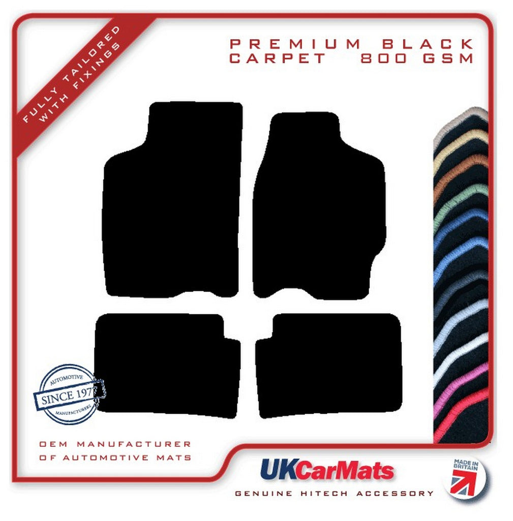 Previous NextHITECH’S NEWLY ADDED PREMIUM CARPET RANGE: A LUXURIOUS VERY HARD WEARING 800 gsm POLYAMIDE CARPET Please check if these are the correct mats for your car when your cars model year falls on the start or the end of the specified year range. If you are unsure please contact us before placing your order. Full set, front and rear mats. A set of fully tailored, premium tufted carpet mats for the above vehicle, manufactured to fit the shape of your car exactly, as per picture shown. The mats are manufactured from a high quality automotive tufted velour carpet, which has an 800 gsm pile weight and a total weight of 2400gsm. These mats have a cut-pile, are finished with an overlocked edge (also known as serging or whipped edging), and have an anti-slip, crumb tec backing. The mats will either be supplied with the original fixing system where applicable if the listing picture shows location holes or otherwise with an industry standard fixing kit for the driver mat. The fixing image, see third picture, confirms which fixing type will be supplied, if you are unsure these are correct for your car please ask! Please note: for OE style only the fixing rings will be supplied in the mats not the securing points as these should already be in the car. The black tufted carpet is available with a matching black edging or a contrasting coloured edging. There is a choice of 13 different edging colours: Apple Green, Autumn Brown, Black, Charcoal Grey, Hot Pink, Lemon Yellow, Light Grey, Light Steel Blue, Midnight Blue, Mushroom Cream, Polar White, Royal Blue and Racing Red. The carpet is also available in grey and beige and in our standard and luxury range, please check our other listings. Any questions, please let us know.