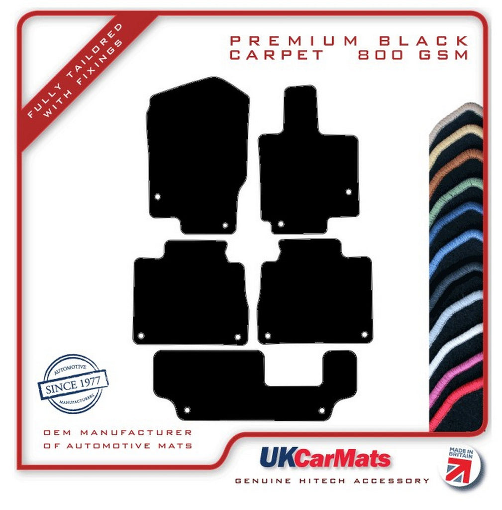Previous NextHITECH’S NEWLY ADDED PREMIUM CARPET RANGE: A LUXURIOUS VERY HARD WEARING 800 gsm POLYAMIDE CARPET Please check if these are the correct mats for your car when your cars model year falls on the start or the end of the specified year range. If you are unsure please contact us before placing your order. Full set, front and rear mats. A set of fully tailored, premium tufted carpet mats for the above vehicle, manufactured to fit the shape of your car exactly, as per picture shown. The mats are manufactured from a high quality automotive tufted velour carpet, which has an 800 gsm pile weight and a total weight of 2400gsm. These mats have a cut-pile, are finished with an overlocked edge (also known as serging or whipped edging), and have an anti-slip, crumb tec backing. The mats will either be supplied with the original fixing system where applicable if the listing picture shows location holes or otherwise with an industry standard fixing kit for the driver mat. The fixing image, see third picture, confirms which fixing type will be supplied, if you are unsure these are correct for your car please ask! Please note: for OE style only the fixing rings will be supplied in the mats not the securing points as these should already be in the car. The black tufted carpet is available with a matching black edging or a contrasting coloured edging. There is a choice of 13 different edging colours: Apple Green, Autumn Brown, Black, Charcoal Grey, Hot Pink, Lemon Yellow, Light Grey, Light Steel Blue, Midnight Blue, Mushroom Cream, Polar White, Royal Blue and Racing Red. The carpet is also available in grey and beige and in our standard and luxury range, please check our other listings. Any questions, please let us know.