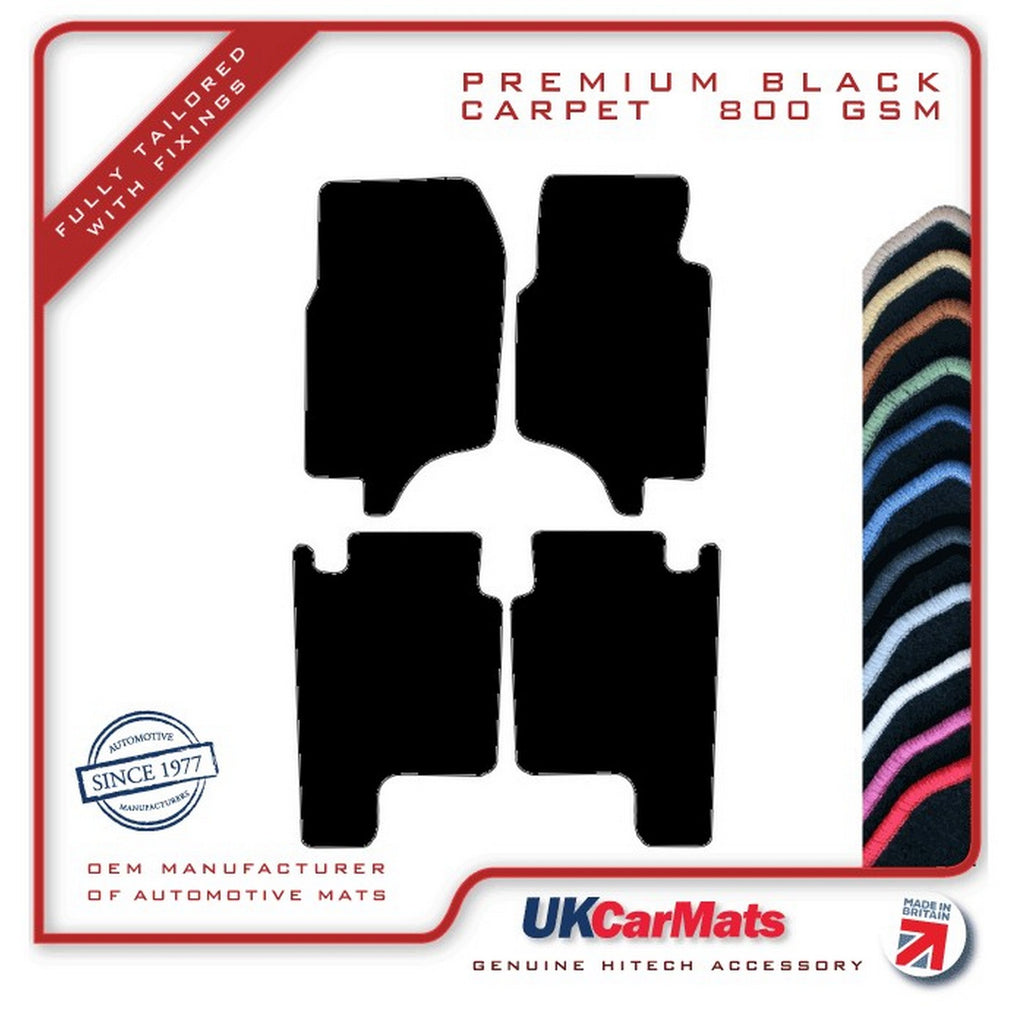 Previous NextHITECH’S NEWLY ADDED PREMIUM CARPET RANGE: A LUXURIOUS VERY HARD WEARING 800 gsm POLYAMIDE CARPET Please check if these are the correct mats for your car when your cars model year falls on the start or the end of the specified year range. If you are unsure please contact us before placing your order. Full set, front and rear mats. A set of fully tailored, premium tufted carpet mats for the above vehicle, manufactured to fit the shape of your car exactly, as per picture shown. The mats are manufactured from a high quality automotive tufted velour carpet, which has an 800 gsm pile weight and a total weight of 2400gsm. These mats have a cut-pile, are finished with an overlocked edge (also known as serging or whipped edging), and have an anti-slip, crumb tec backing. The mats will either be supplied with the original fixing system where applicable if the listing picture shows location holes or otherwise with an industry standard fixing kit for the driver mat. The fixing image, see third picture, confirms which fixing type will be supplied, if you are unsure these are correct for your car please ask! Please note: for OE style only the fixing rings will be supplied in the mats not the securing points as these should already be in the car. The black tufted carpet is available with a matching black edging or a contrasting coloured edging. There is a choice of 13 different edging colours: Apple Green, Autumn Brown, Black, Charcoal Grey, Hot Pink, Lemon Yellow, Light Grey, Light Steel Blue, Midnight Blue, Mushroom Cream, Polar White, Royal Blue and Racing Red. The carpet is also available in grey and beige and in our standard and luxury range, please check our other listings. Any questions, please let us know.