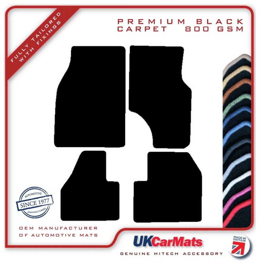Previous NextHITECH’S NEWLY ADDED PREMIUM CARPET RANGE: A LUXURIOUS VERY HARD WEARING 800 gsm POLYAMIDE CARPET Please check if these are the correct mats for your car when your cars model year falls on the start or the end of the specified year range. If you are unsure please contact us before placing your order. Full set, front and rear mats. A set of fully tailored, premium tufted carpet mats for the above vehicle, manufactured to fit the shape of your car exactly, as per picture shown. The mats are manufactured from a high quality automotive tufted velour carpet, which has an 800 gsm pile weight and a total weight of 2400gsm. These mats have a cut-pile, are finished with an overlocked edge (also known as serging or whipped edging), and have an anti-slip, crumb tec backing. The mats will either be supplied with the original fixing system where applicable if the listing picture shows location holes or otherwise with an industry standard fixing kit for the driver mat. The fixing image, see third picture, confirms which fixing type will be supplied, if you are unsure these are correct for your car please ask! Please note: for OE style only the fixing rings will be supplied in the mats not the securing points as these should already be in the car. The black tufted carpet is available with a matching black edging or a contrasting coloured edging. There is a choice of 13 different edging colours: Apple Green, Autumn Brown, Black, Charcoal Grey, Hot Pink, Lemon Yellow, Light Grey, Light Steel Blue, Midnight Blue, Mushroom Cream, Polar White, Royal Blue and Racing Red. The carpet is also available in grey and beige and in our standard and luxury range, please check our other listings. Any questions, please let us know.