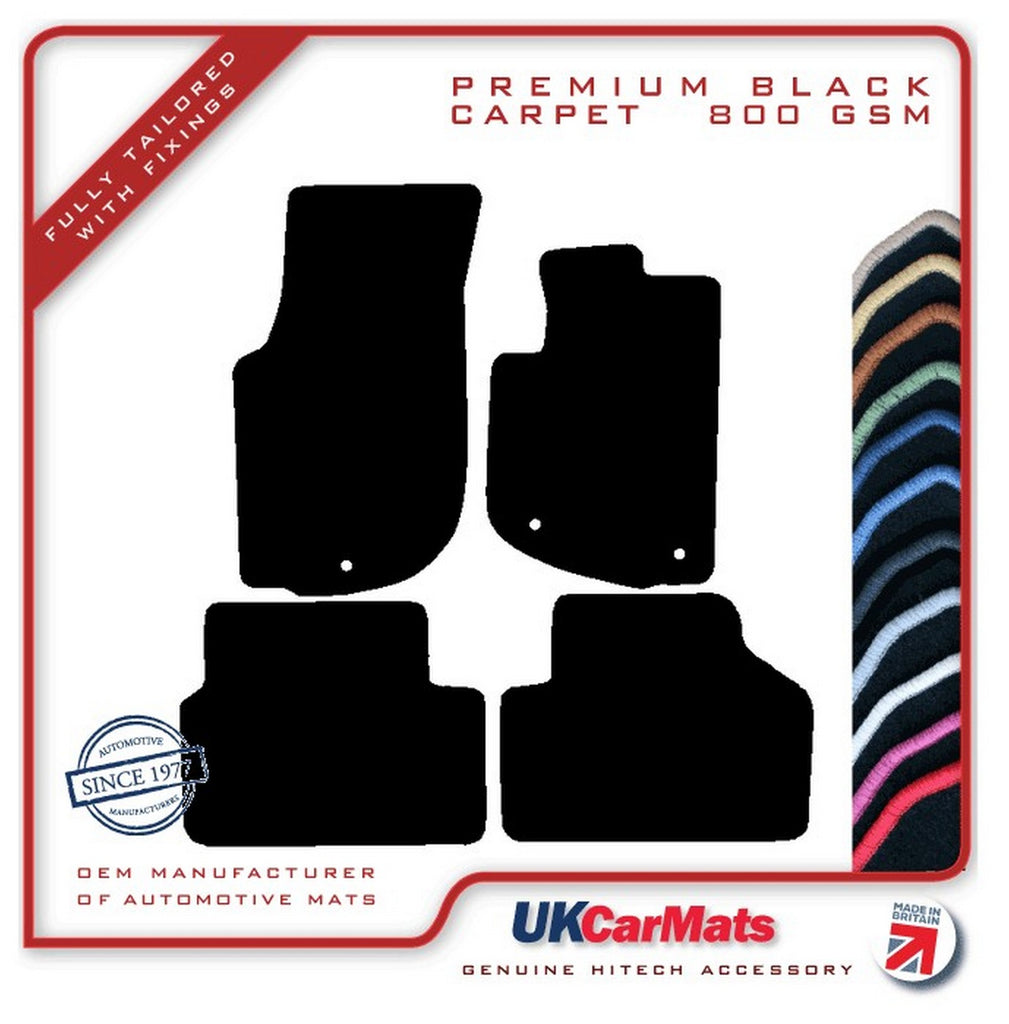 Previous NextHITECH’S NEWLY ADDED PREMIUM CARPET RANGE: A LUXURIOUS VERY HARD WEARING 800 gsm POLYAMIDE CARPET Please check if these are the correct mats for your car when your cars model year falls on the start or the end of the specified year range. If you are unsure please contact us before placing your order. Full set, front and rear mats. A set of fully tailored, premium tufted carpet mats for the above vehicle, manufactured to fit the shape of your car exactly, as per picture shown. The mats are manufactured from a high quality automotive tufted velour carpet, which has an 800 gsm pile weight and a total weight of 2400gsm. These mats have a cut-pile, are finished with an overlocked edge (also known as serging or whipped edging), and have an anti-slip, crumb tec backing. The mats will either be supplied with the original fixing system where applicable if the listing picture shows location holes or otherwise with an industry standard fixing kit for the driver mat. The fixing image, see third picture, confirms which fixing type will be supplied, if you are unsure these are correct for your car please ask! Please note: for OE style only the fixing rings will be supplied in the mats not the securing points as these should already be in the car. The black tufted carpet is available with a matching black edging or a contrasting coloured edging. There is a choice of 13 different edging colours: Apple Green, Autumn Brown, Black, Charcoal Grey, Hot Pink, Lemon Yellow, Light Grey, Light Steel Blue, Midnight Blue, Mushroom Cream, Polar White, Royal Blue and Racing Red. The carpet is also available in grey and beige and in our standard and luxury range, please check our other listings. Any questions, please let us know.