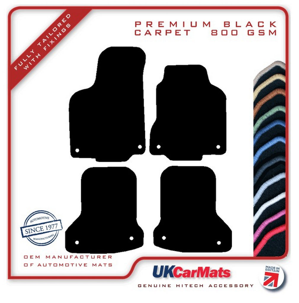 Previous NextHITECH’S NEWLY ADDED PREMIUM CARPET RANGE: A LUXURIOUS VERY HARD WEARING 800 gsm POLYAMIDE CARPET Please check if these are the correct mats for your car when your cars model year falls on the start or the end of the specified year range. If you are unsure please contact us before placing your order. Full set, front and rear mats. A set of fully tailored, premium tufted carpet mats for the above vehicle, manufactured to fit the shape of your car exactly, as per picture shown. The mats are manufactured from a high quality automotive tufted velour carpet, which has an 800 gsm pile weight and a total weight of 2400gsm. These mats have a cut-pile, are finished with an overlocked edge (also known as serging or whipped edging), and have an anti-slip, crumb tec backing. The mats will either be supplied with the original fixing system where applicable if the listing picture shows location holes or otherwise with an industry standard fixing kit for the driver mat. The fixing image, see third picture, confirms which fixing type will be supplied, if you are unsure these are correct for your car please ask! Please note: for OE style only the fixing rings will be supplied in the mats not the securing points as these should already be in the car. The black tufted carpet is available with a matching black edging or a contrasting coloured edging. There is a choice of 13 different edging colours: Apple Green, Autumn Brown, Black, Charcoal Grey, Hot Pink, Lemon Yellow, Light Grey, Light Steel Blue, Midnight Blue, Mushroom Cream, Polar White, Royal Blue and Racing Red. The carpet is also available in grey and beige and in our standard and luxury range, please check our other listings. Any questions, please let us know.