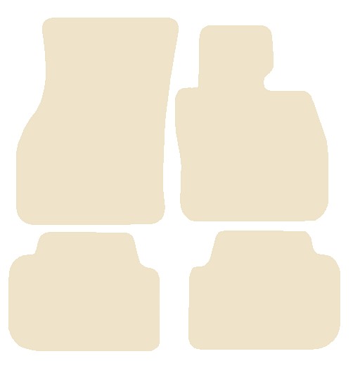 The mats are manufactured from a high quality automotive tufted velour carpet in beige, which has a 750 gsm pile weight and a total weight of 2250gsm. These mats are finished with a beige (mushroom cream) overlocked edge (also known as serging or whipped edging), and have an anti-slip backing.