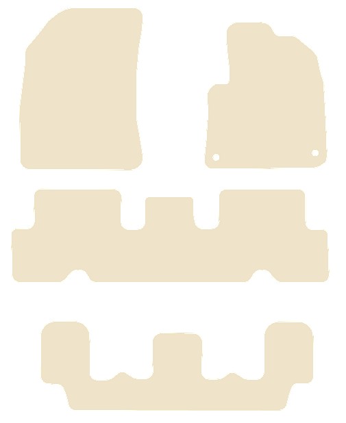 The mats are manufactured from a high quality automotive tufted velour carpet in beige, which has a 750 gsm pile weight and a total weight of 2250gsm. These mats are finished with a beige (mushroom cream) overlocked edge (also known as serging or whipped edging), and have an anti-slip backing.