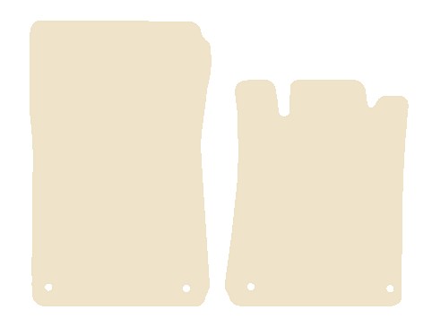 The mats are manufactured from a high quality automotive tufted velour carpet in beige, which has a 750 gsm pile weight and a total weight of 2250gsm. These mats are finished with a beige (mushroom cream) overlocked edge (also known as serging or whipped edging), and have an anti-slip backing.