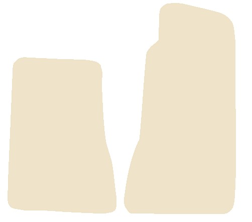 The mats are manufactured from a high quality automotive tufted velour carpet in beige, which has a 750 gsm pile weight and a total weight of 2250gsm. These mats are finished with a beige (mushroom cream) overlocked edge (also known as serging or whipped edging), and have an anti-slip backing.