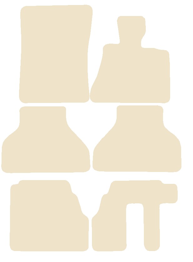 The mats are manufactured from a high quality automotive tufted velour carpet in beige, which has a 750 gsm pile weight and a total weight of 2250gsm. These mats are finished with a beige (mushroom cream) overlocked edge (also known as serging or whipped edging), and have an anti-slip backing.