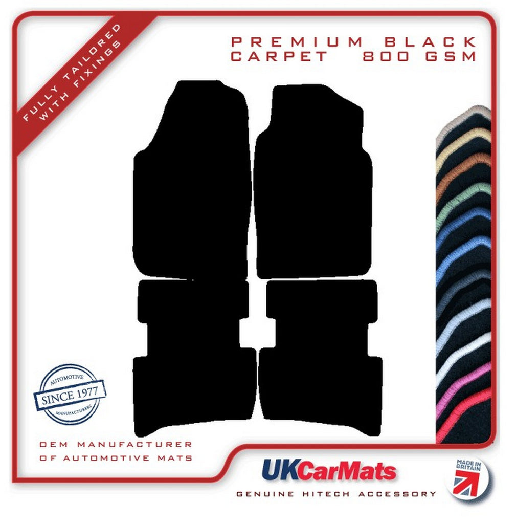 Previous NextHITECH’S NEWLY ADDED PREMIUM CARPET RANGE: A LUXURIOUS VERY HARD WEARING 800 gsm POLYAMIDE CARPET Please check if these are the correct mats for your car when your cars model year falls on the start or the end of the specified year range. If you are unsure please contact us before placing your order. Full set, front and rear mats. A set of fully tailored, premium tufted carpet mats for the above vehicle, manufactured to fit the shape of your car exactly, as per picture shown. The mats are manufactured from a high quality automotive tufted velour carpet, which has an 800 gsm pile weight and a total weight of 2400gsm. These mats have a cut-pile, are finished with an overlocked edge (also known as serging or whipped edging), and have an anti-slip, crumb tec backing. The mats will either be supplied with the original fixing system where applicable if the listing picture shows location holes or otherwise with an industry standard fixing kit for the driver mat. The fixing image, see third picture, confirms which fixing type will be supplied, if you are unsure these are correct for your car please ask! Please note: for OE style only the fixing rings will be supplied in the mats not the securing points as these should already be in the car. The black tufted carpet is available with a matching black edging or a contrasting coloured edging. There is a choice of 13 different edging colours: Apple Green, Autumn Brown, Black, Charcoal Grey, Hot Pink, Lemon Yellow, Light Grey, Light Steel Blue, Midnight Blue, Mushroom Cream, Polar White, Royal Blue and Racing Red. The carpet is also available in grey and beige and in our standard and luxury range, please check our other listings. Any questions, please let us know.