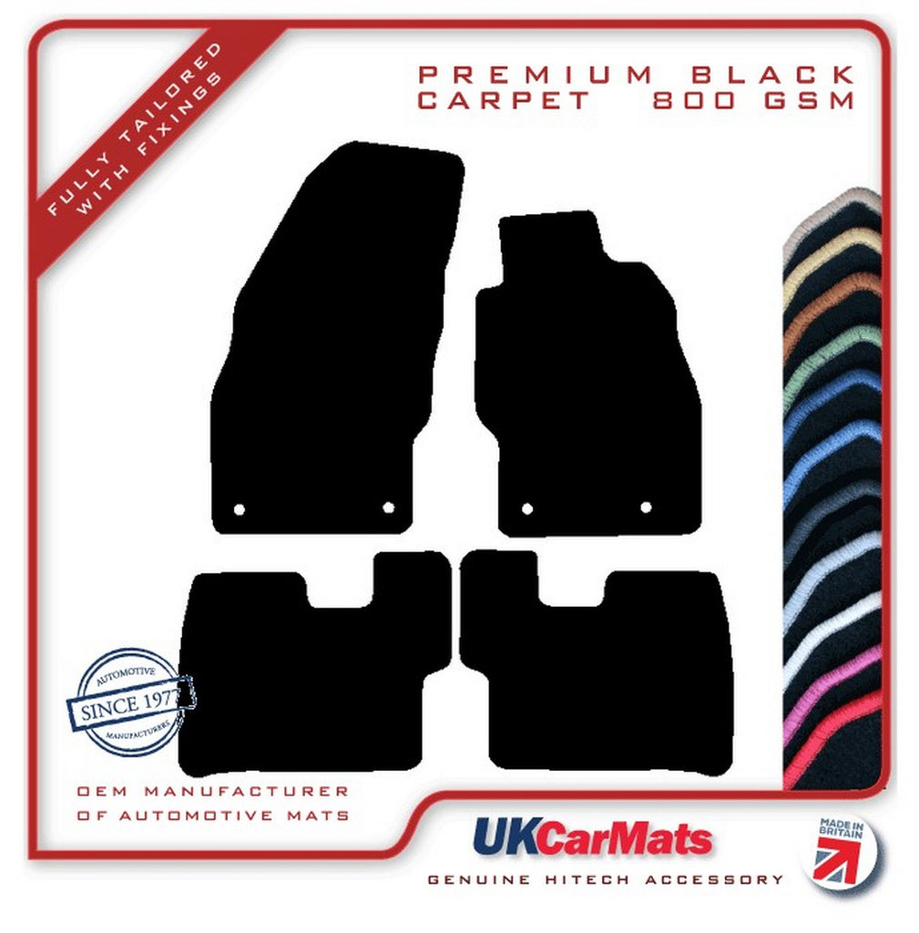Previous NextHITECH’S NEWLY ADDED PREMIUM CARPET RANGE: A LUXURIOUS VERY HARD WEARING 800 gsm POLYAMIDE CARPET Please check if these are the correct mats for your car when your cars model year falls on the start or the end of the specified year range. If you are unsure please contact us before placing your order. Full set, front and rear mats. A set of fully tailored, premium tufted carpet mats for the above vehicle, manufactured to fit the shape of your car exactly, as per picture shown. The mats are manufactured from a high quality automotive tufted velour carpet, which has an 800 gsm pile weight and a total weight of 2400gsm. These mats have a cut-pile, are finished with an overlocked edge (also known as serging or whipped edging), and have an anti-slip, crumb tec backing. The mats will either be supplied with the original fixing system where applicable if the listing picture shows location holes or otherwise with an industry standard fixing kit for the driver mat. The fixing image, see third picture, confirms which fixing type will be supplied, if you are unsure these are correct for your car please ask! Please note: for OE style only the fixing rings will be supplied in the mats not the securing points as these should already be in the car. The black tufted carpet is available with a matching black edging or a contrasting coloured edging. There is a choice of 13 different edging colours: Apple Green, Autumn Brown, Black, Charcoal Grey, Hot Pink, Lemon Yellow, Light Grey, Light Steel Blue, Midnight Blue, Mushroom Cream, Polar White, Royal Blue and Racing Red. The carpet is also available in grey and beige and in our standard and luxury range, please check our other listings. Any questions, please let us know.
