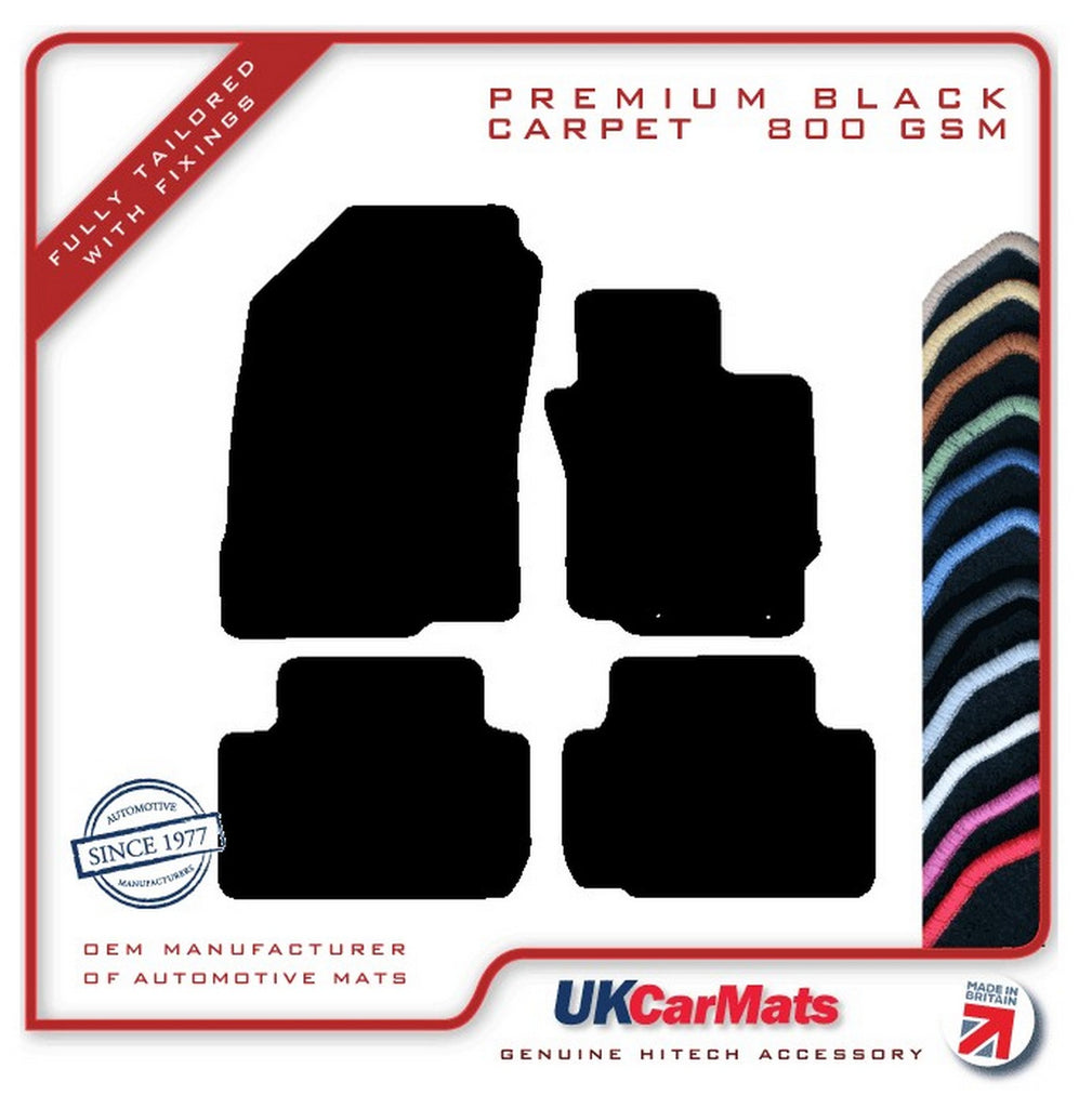 Previous NextHITECH’S NEWLY ADDED PREMIUM CARPET RANGE: A LUXURIOUS VERY HARD WEARING 800 gsm POLYAMIDE CARPET Please check if these are the correct mats for your car when your cars model year falls on the start or the end of the specified year range. If you are unsure please contact us before placing your order. Full set, front and rear mats. A set of fully tailored, premium tufted carpet mats for the above vehicle, manufactured to fit the shape of your car exactly, as per picture shown. The mats are manufactured from a high quality automotive tufted velour carpet, which has an 800 gsm pile weight and a total weight of 2400gsm. These mats have a cut-pile, are finished with an overlocked edge (also known as serging or whipped edging), and have an anti-slip, crumb tec backing. The mats will either be supplied with the original fixing system where applicable if the listing picture shows location holes or otherwise with an industry standard fixing kit for the driver mat. The fixing image, see third picture, confirms which fixing type will be supplied, if you are unsure these are correct for your car please ask! Please note: for OE style only the fixing rings will be supplied in the mats not the securing points as these should already be in the car. The black tufted carpet is available with a matching black edging or a contrasting coloured edging. There is a choice of 13 different edging colours: Apple Green, Autumn Brown, Black, Charcoal Grey, Hot Pink, Lemon Yellow, Light Grey, Light Steel Blue, Midnight Blue, Mushroom Cream, Polar White, Royal Blue and Racing Red. The carpet is also available in grey and beige and in our standard and luxury range, please check our other listings. Any questions, please let us know.