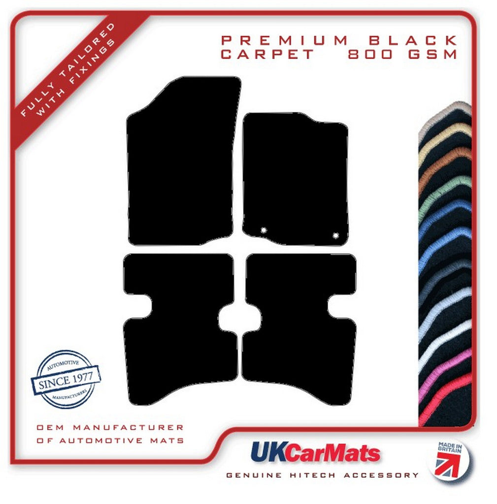 Previous NextHITECH’S NEWLY ADDED PREMIUM CARPET RANGE: A LUXURIOUS VERY HARD WEARING 800 gsm POLYAMIDE CARPET Please check if these are the correct mats for your car when your cars model year falls on the start or the end of the specified year range. If you are unsure please contact us before placing your order. Full set, front and rear mats. A set of fully tailored, premium tufted carpet mats for the above vehicle, manufactured to fit the shape of your car exactly, as per picture shown. The mats are manufactured from a high quality automotive tufted velour carpet, which has an 800 gsm pile weight and a total weight of 2400gsm. These mats have a cut-pile, are finished with an overlocked edge (also known as serging or whipped edging), and have an anti-slip, crumb tec backing. The mats will either be supplied with the original fixing system where applicable if the listing picture shows location holes or otherwise with an industry standard fixing kit for the driver mat. The fixing image, see third picture, confirms which fixing type will be supplied, if you are unsure these are correct for your car please ask! Please note: for OE style only the fixing rings will be supplied in the mats not the securing points as these should already be in the car. The black tufted carpet is available with a matching black edging or a contrasting coloured edging. There is a choice of 13 different edging colours: Apple Green, Autumn Brown, Black, Charcoal Grey, Hot Pink, Lemon Yellow, Light Grey, Light Steel Blue, Midnight Blue, Mushroom Cream, Polar White, Royal Blue and Racing Red. The carpet is also available in grey and beige and in our standard and luxury range, please check our other listings. Any questions, please let us know.