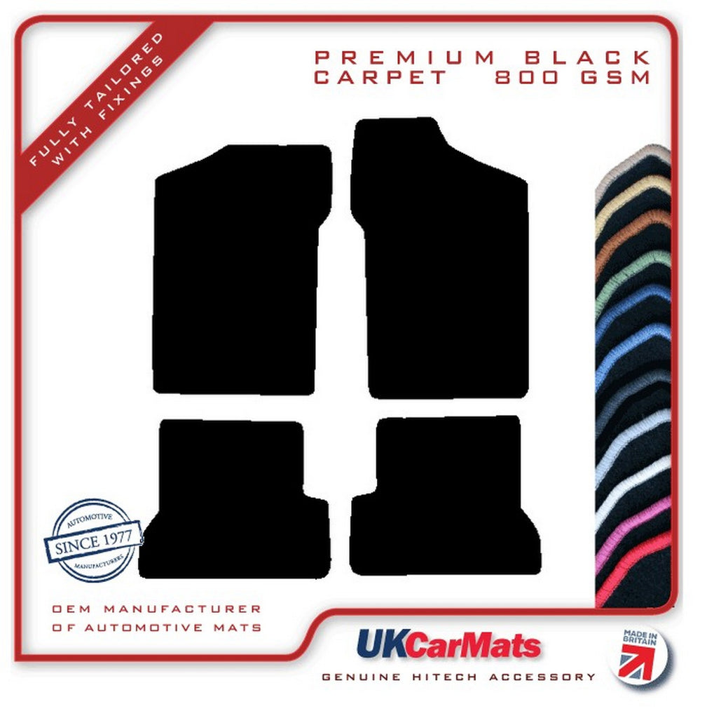 Previous NextHITECH’S NEWLY ADDED PREMIUM CARPET RANGE: A LUXURIOUS VERY HARD WEARING 800 gsm POLYAMIDE CARPET Please check if these are the correct mats for your car when your cars model year falls on the start or the end of the specified year range. If you are unsure please contact us before placing your order. Full set, front and rear mats. A set of fully tailored, premium tufted carpet mats for the above vehicle, manufactured to fit the shape of your car exactly, as per picture shown. The mats are manufactured from a high quality automotive tufted velour carpet, which has an 800 gsm pile weight and a total weight of 2400gsm. These mats have a cut-pile, are finished with an overlocked edge (also known as serging or whipped edging), and have an anti-slip, crumb tec backing. The mats will either be supplied with the original fixing system where applicable if the listing picture shows location holes or otherwise with an industry standard fixing kit for the driver mat. The fixing image, see third picture, confirms which fixing type will be supplied, if you are unsure these are correct for your car please ask! Please note: for OE style only the fixing rings will be supplied in the mats not the securing points as these should already be in the car. The black tufted carpet is available with a matching black edging or a contrasting coloured edging. There is a choice of 13 different edging colours: Apple Green, Autumn Brown, Black, Charcoal Grey, Hot Pink, Lemon Yellow, Light Grey, Light Steel Blue, Midnight Blue, Mushroom Cream, Polar White, Royal Blue and Racing Red. The carpet is also available in grey and beige and in our standard and luxury range, please check our other listings. Any questions, please let us know.