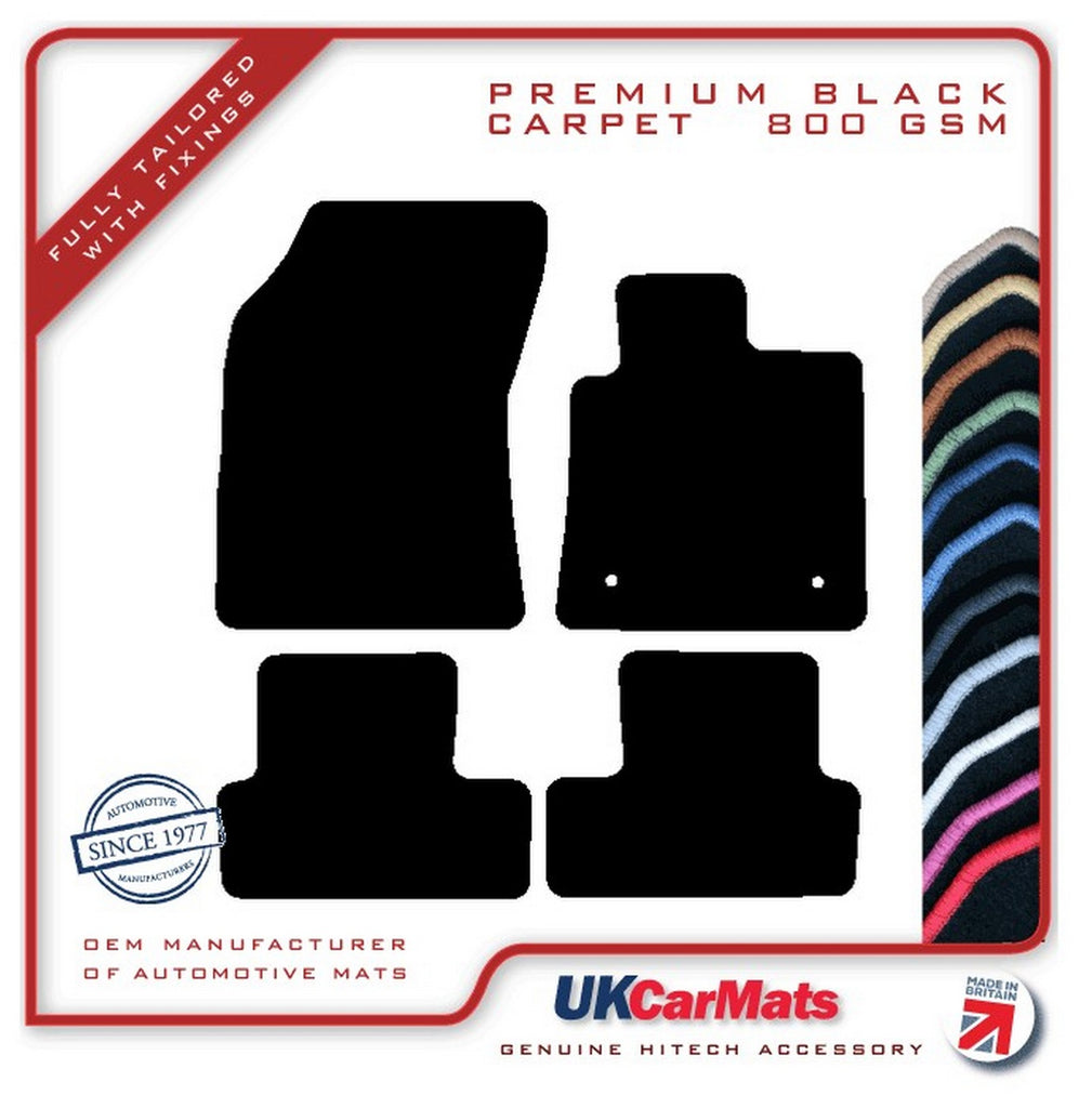 Previous NextHITECH’S NEWLY ADDED PREMIUM CARPET RANGE: A LUXURIOUS VERY HARD WEARING 800 gsm POLYAMIDE CARPET Please check if these are the correct mats for your car when your cars model year falls on the start or the end of the specified year range. If you are unsure please contact us before placing your order. Full set, front and rear mats. A set of fully tailored, premium tufted carpet mats for the above vehicle, manufactured to fit the shape of your car exactly, as per picture shown. The mats are manufactured from a high quality automotive tufted velour carpet, which has an 800 gsm pile weight and a total weight of 2400gsm. These mats have a cut-pile, are finished with an overlocked edge (also known as serging or whipped edging), and have an anti-slip, crumb tec backing. The mats will either be supplied with the original fixing system where applicable if the listing picture shows location holes or otherwise with an industry standard fixing kit for the driver mat. The fixing image, see third picture, confirms which fixing type will be supplied, if you are unsure these are correct for your car please ask! Please note: for OE style only the fixing rings will be supplied in the mats not the securing points as these should already be in the car. The black tufted carpet is available with a matching black edging or a contrasting coloured edging. There is a choice of 13 different edging colours: Apple Green, Autumn Brown, Black, Charcoal Grey, Hot Pink, Lemon Yellow, Light Grey, Light Steel Blue, Midnight Blue, Mushroom Cream, Polar White, Royal Blue and Racing Red. The carpet is also available in grey and beige and in our standard and luxury range, please check our other listings. Any questions, please let us know.