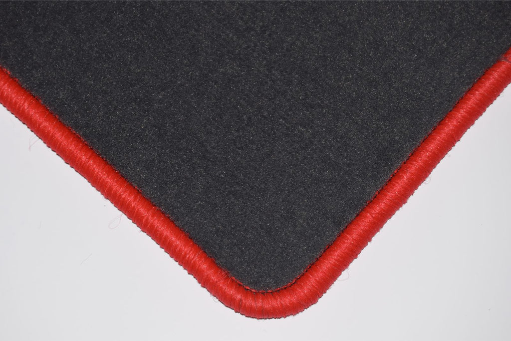 The mats are manufactured from a high quality grey automotive tufted velour carpet, which has a 750 gsm pile weight and a total weight of 2250gsm. These mats are finished with an overlocked edge (also known as serging or whipped edging), and have an anti-slip, granular backing.