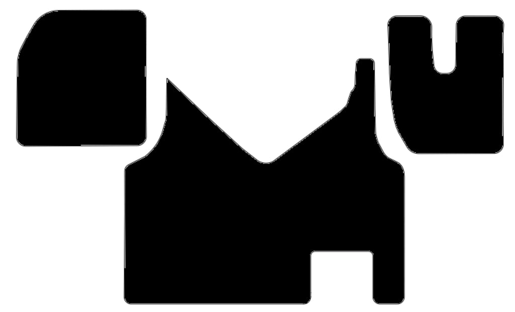 The mats are manufactured from a 650gsm pile weight automotive needle punch black carpet, with a total weight of 2000gsm. These mats are finished with an overlocked edge (also known as serging or whipped edging), and have an anti-slip, granular backing. A high frequency welded heel pad, see detail picture, is added to the driver’s side to enhance comfort and extend the life of the product.